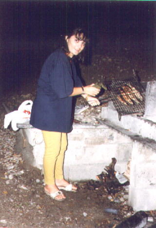 Anche Pina, assistente di Sergio, si esercita con una grigliata di pesce.